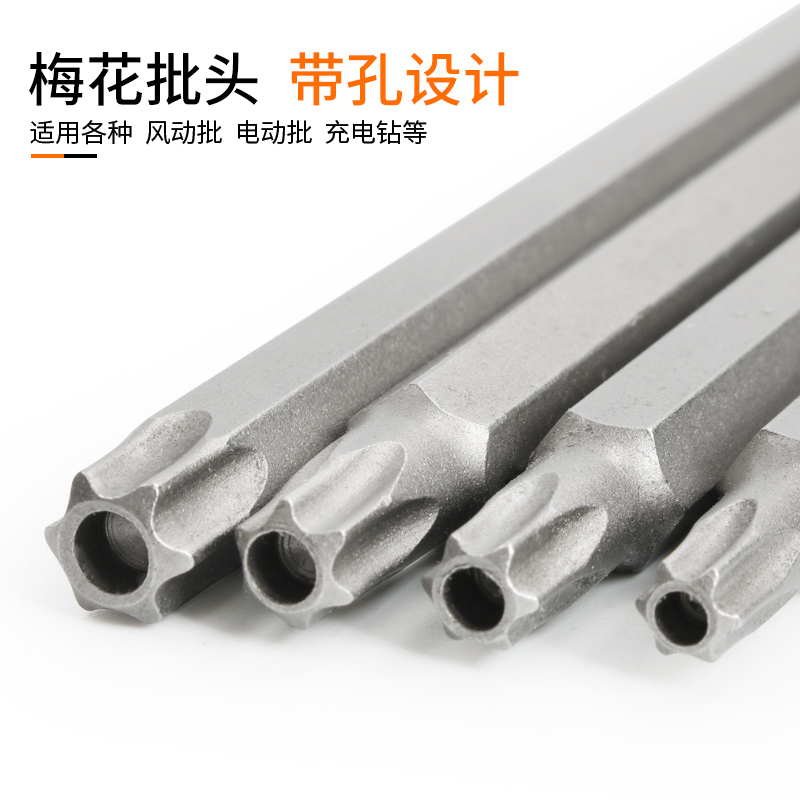 Plum Blossom Batch Head S2 Chrome Vanadium Steel Band Middle Hole Lengthened Plus Hard Six Star Electric Drill Electric Screw Driver Pneumatic Screwdriver Head