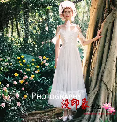 Korean version of location Forest photo suspenders backless dress photography photo wedding photo studio theme clothing New