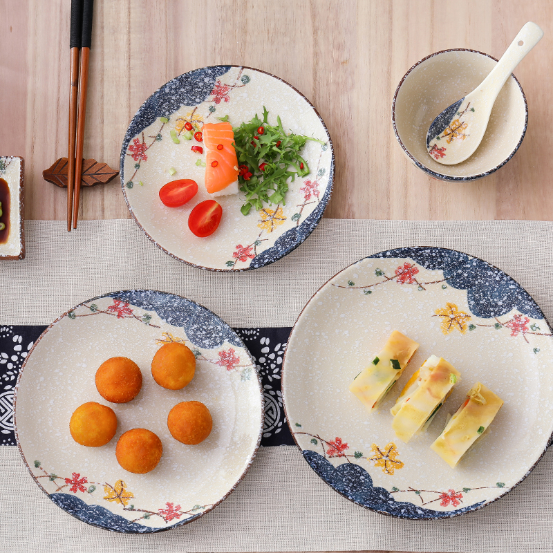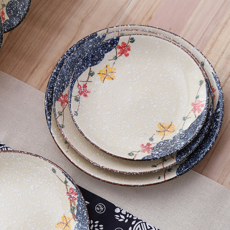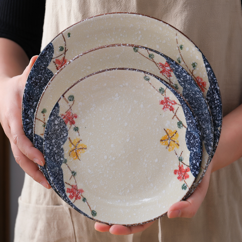 Underglaze color hand-painted ceramic flat plate shallow western food steak sushi dish cold dish plate family tableware