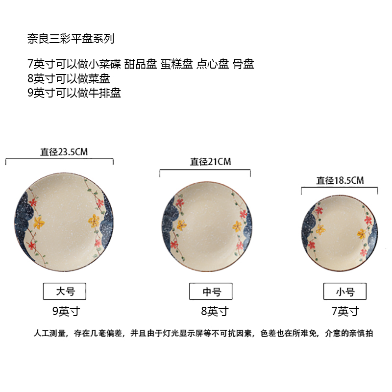 Qingcai 6-inch shallow plate (about 15cm in diameter) Qingcai 7-inch shallow plate (about 18 5cm in diameter) Qingcai 8-inch shallow plate (about 21cm in diameter) Qingcai 9-inch shallow plate (diameter about 21cm)