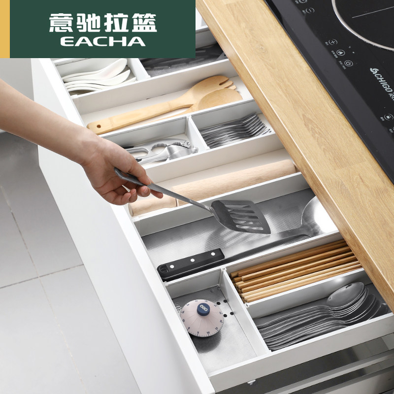 Yichi kitchen cabinet 304 stainless steel tool basket single-layer drawer type partition storage kitchen cabinet inside rack