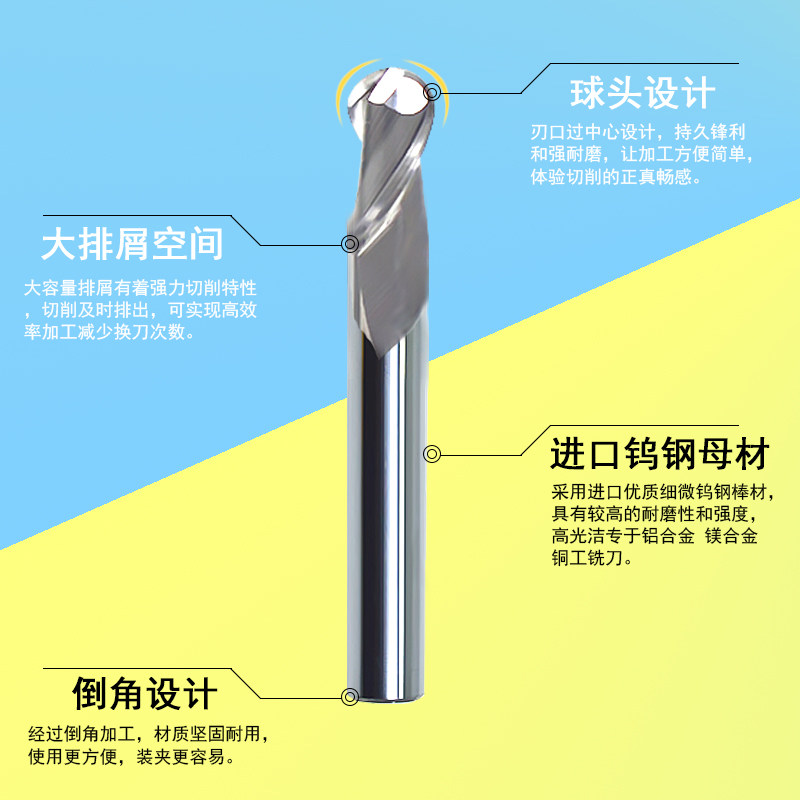 55-degree 2-edge aluminum with ball head milling cutter aluminum special ball knife aluminum with knife R0 5 R1 R1 5 R1 75 R2 R3