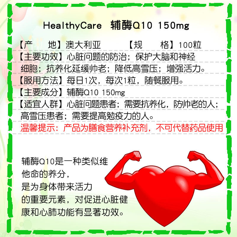 Australia HC Coenzyme Q10 Soft Capsule Healthy Care Heart Treasure 150mg 100 Capsules Honoring Coenzyme