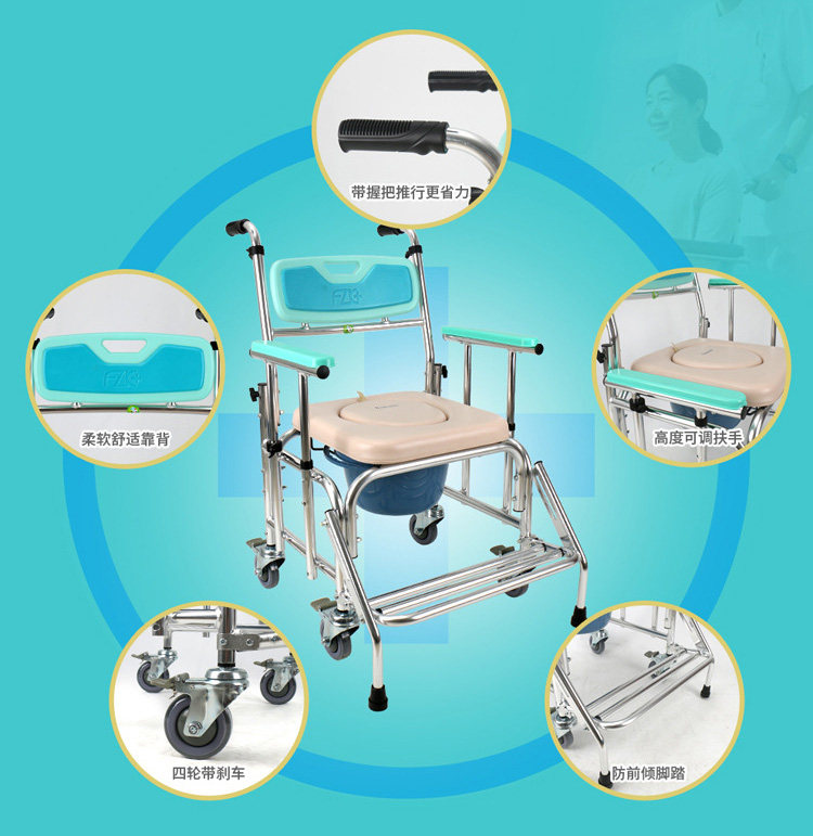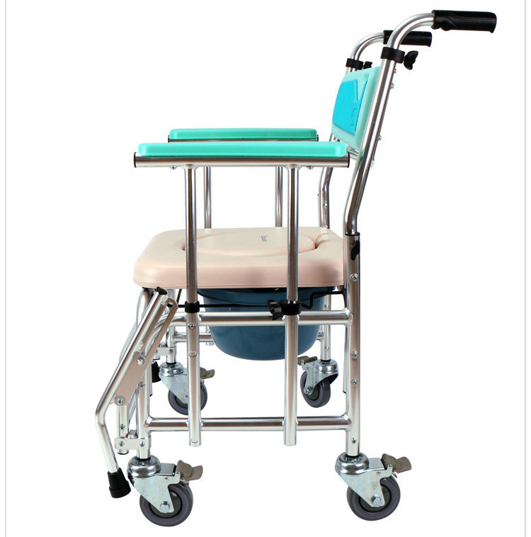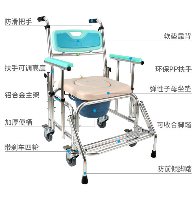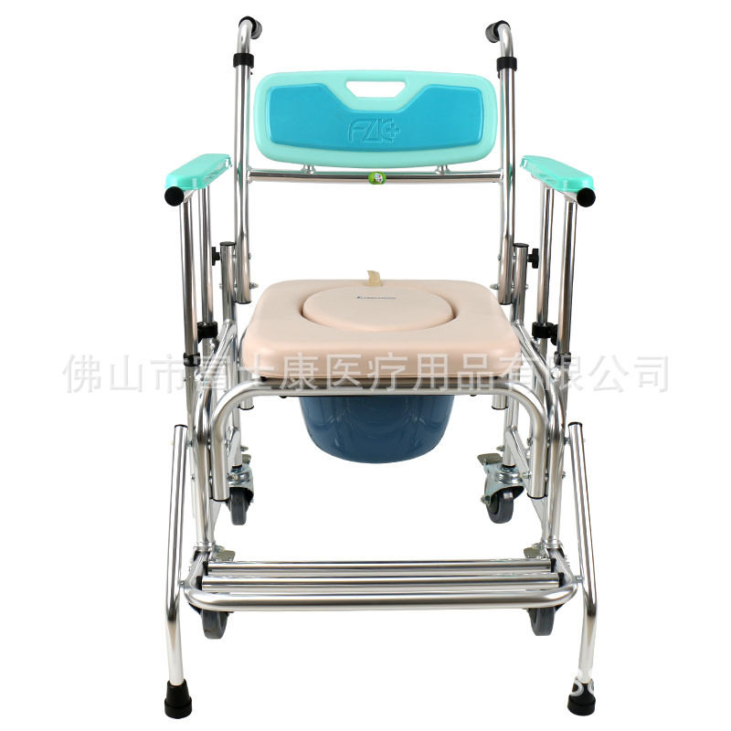 2021 Foxconn aluminum alloy toilet chair wheelchair adjustable high and low belt wheel waterproof care bath chair