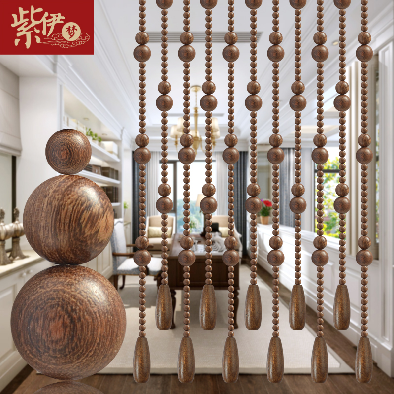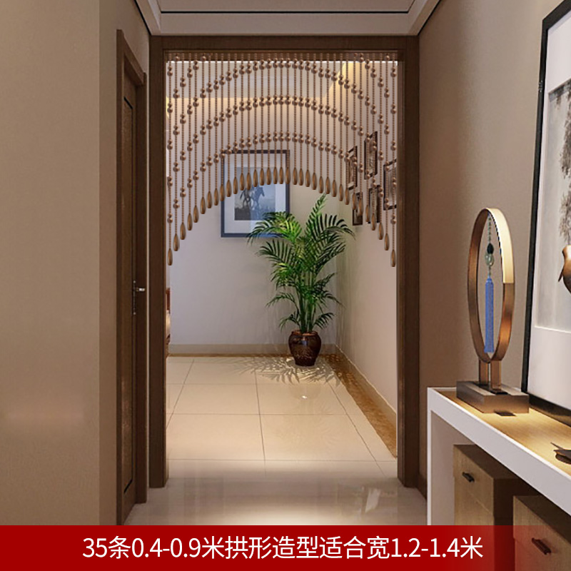 Natural Golden sandalwood wooden gourd bead curtain curtain partition hanging curtain living room solid wood high-grade Chinese style non-punching household