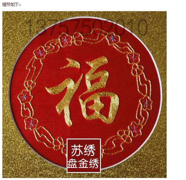 Pan gold embroidered hand-embroidered silk thread embroidered custom handmade Su embroidery pan gold embroidery
