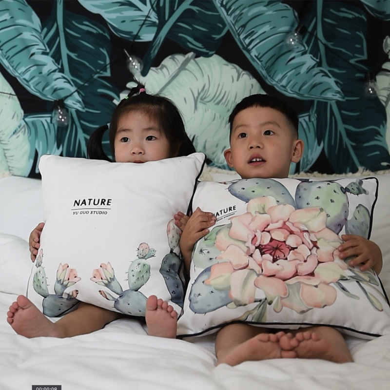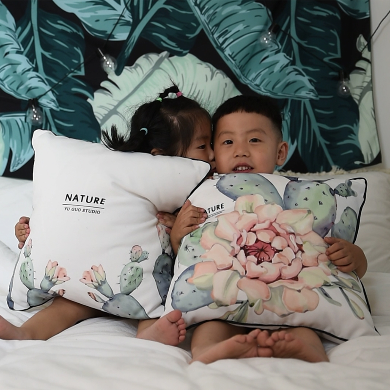 Pyuka in Nordic in advanced luxury sofa with pillow cactus geometry mat cotton and Moroccan model room