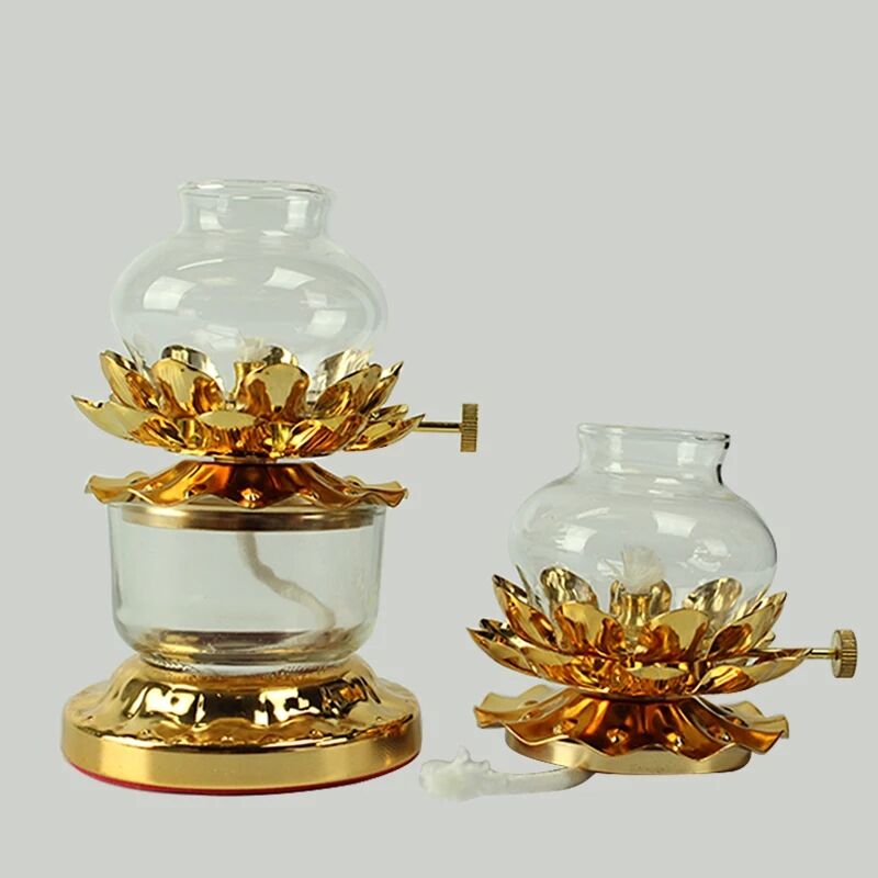 Small oil lamp without word, total height of 12.5 cm, one bottle of ghee (2 liters), small lampshade--lower mouth 38, upper mouth 45cm alloy Buddha Heart Sutra small oil lamp