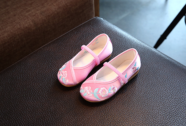 2018 summer old Beijing handmade cloth shoes children's embroidered shoes ethnic style dance shoes tendon sole princess shoes single shoes