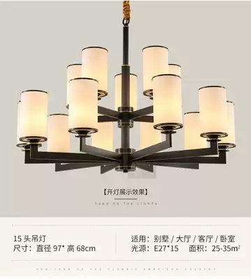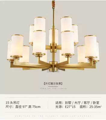 Yiyuan full copper chandelier living room dining room Nordic style black simple bedroom model room study Villa clubhouse lamp