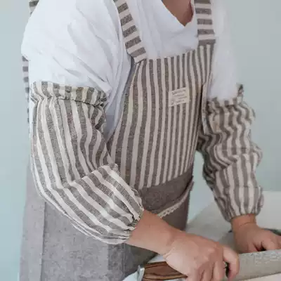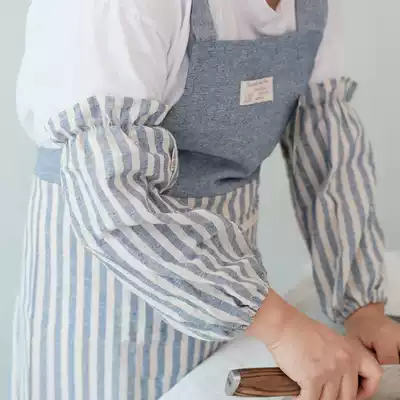 Japanese-style cotton and linen breathable striped sleeve cover Kitchen sleeve female long version office sleeve head adult sleeve two-piece suit