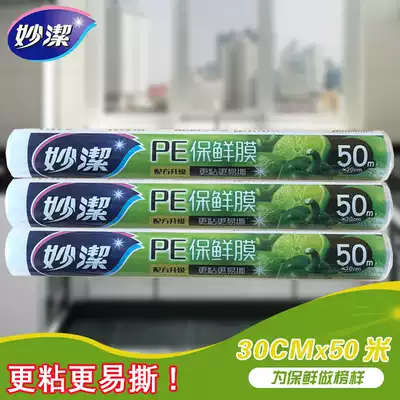 Miaojie PE cling film disposable refrigerator Microwave oven large roll package 3 roll combination package 25*50 30*50(90)