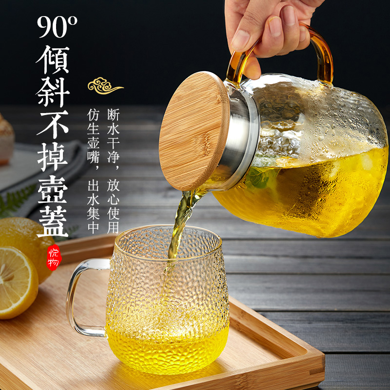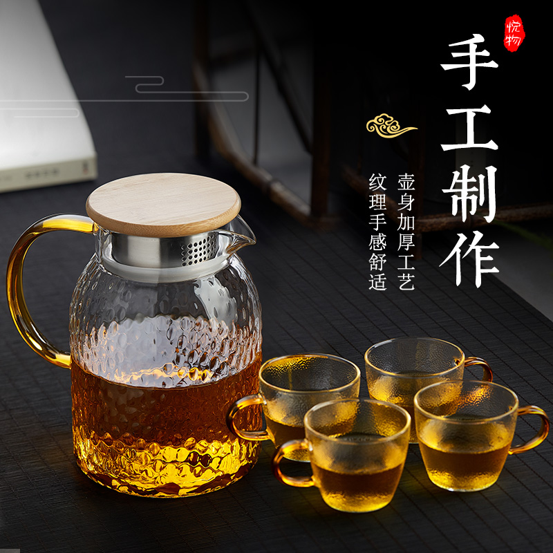 Yuewu glass teapot set large-capacity household glass kettle tea maker high temperature resistant large hammer pattern teapot