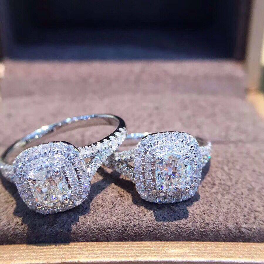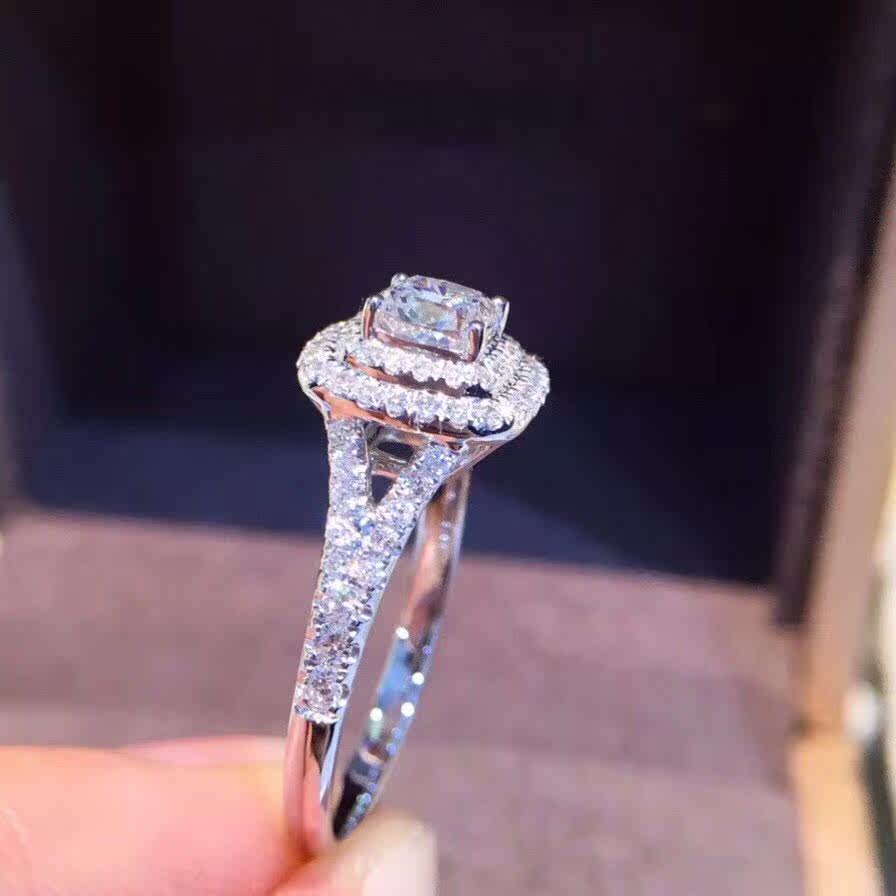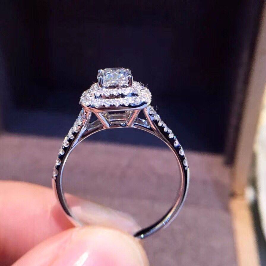18K Gold Princess Cut Diamond Ring 50 Points Wedding Diamond Ring Female Group Set