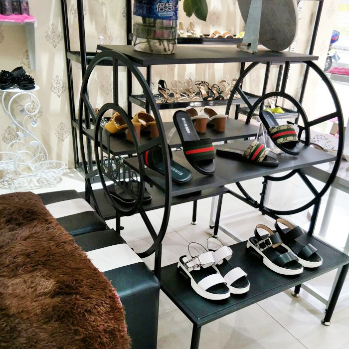 Running Water Table High And Low Show Shelf Floor Type Iron Art Creative Retro Middle Island Men's And Women's Clothing Shoes Pack Shelving Wheel Shelving
