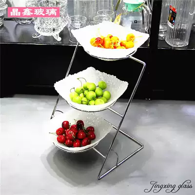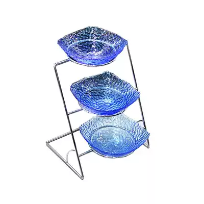 Glass Bowl (blue) glass bowl (white jade color) blue set (including 3 bowls and 1 rack) White Jade set (including 3 bowls and 1 rack) large three-layer rack