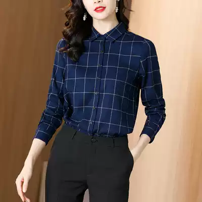 Grated Plaid Blouse Women Long Sleeve 2021 Autumn New High-end Office Wear Loose Plus Shirt