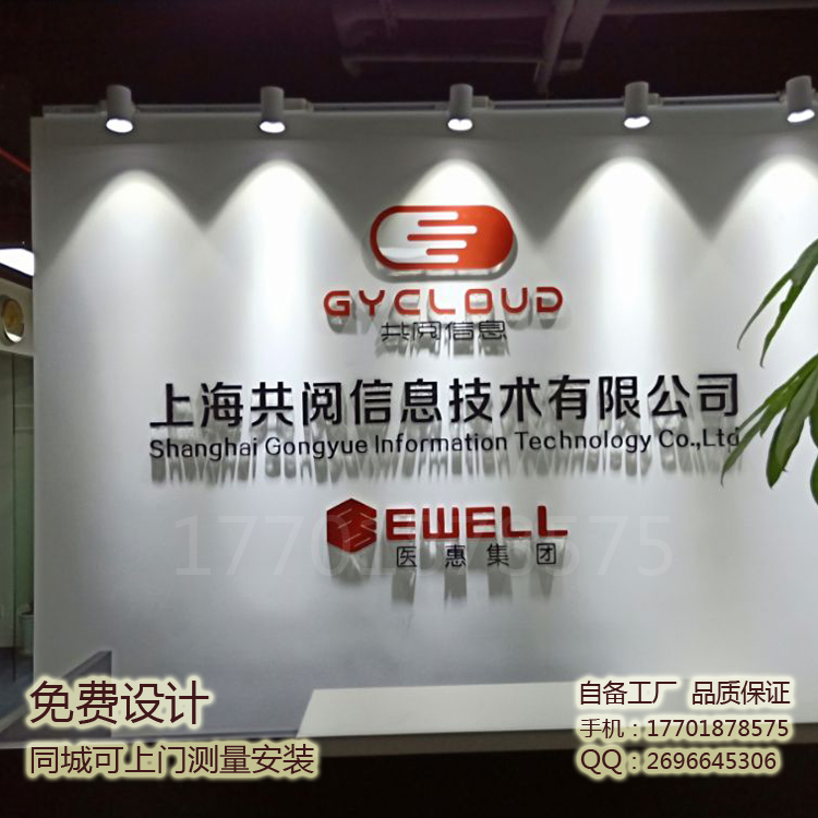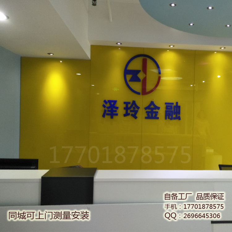 Company front desk Logo wall Logo design company background wall design company entrance paint glass partition
