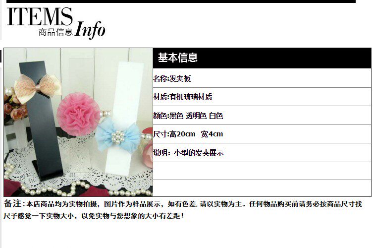 Transparent acrylic display frame hair clamp head head decorative frame jewelry collection frame