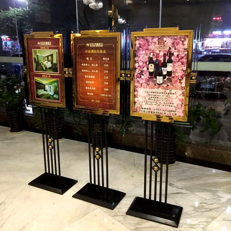 Titanium Gold Hotel Waterboard Foyer Signs Stainless vertical guide Signs Advertising Show Shelf Poster for Greeting Cards-Taobao