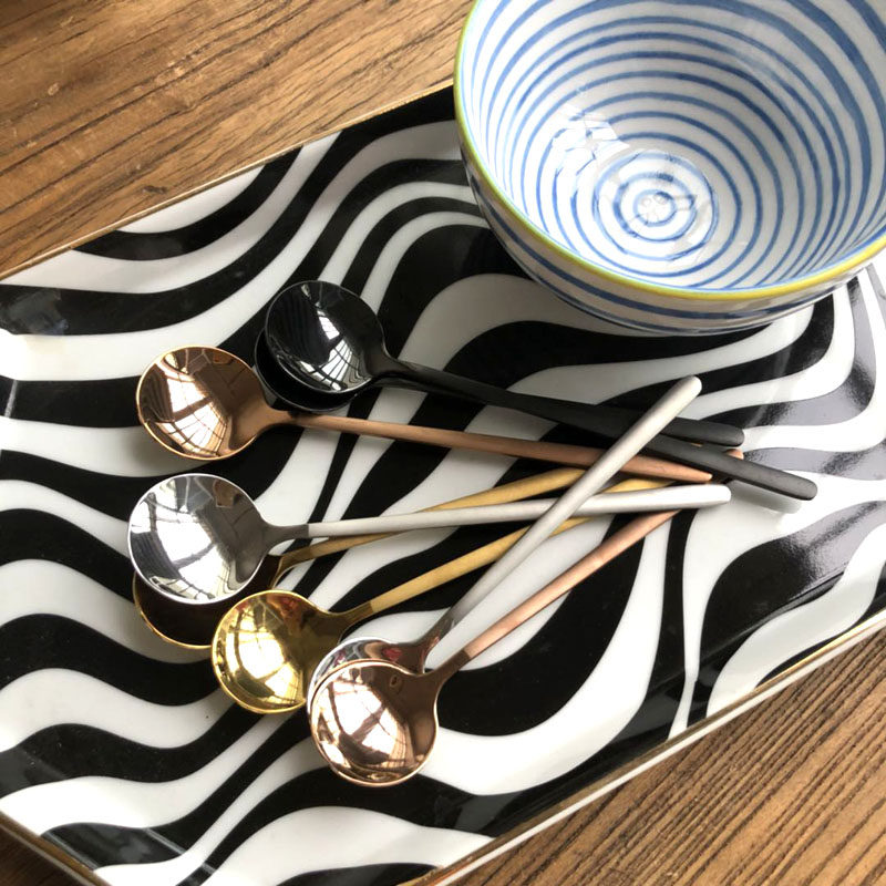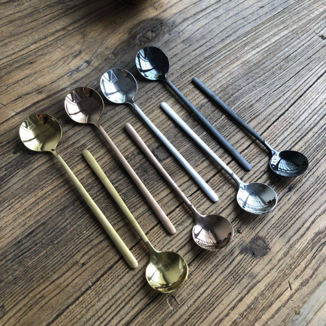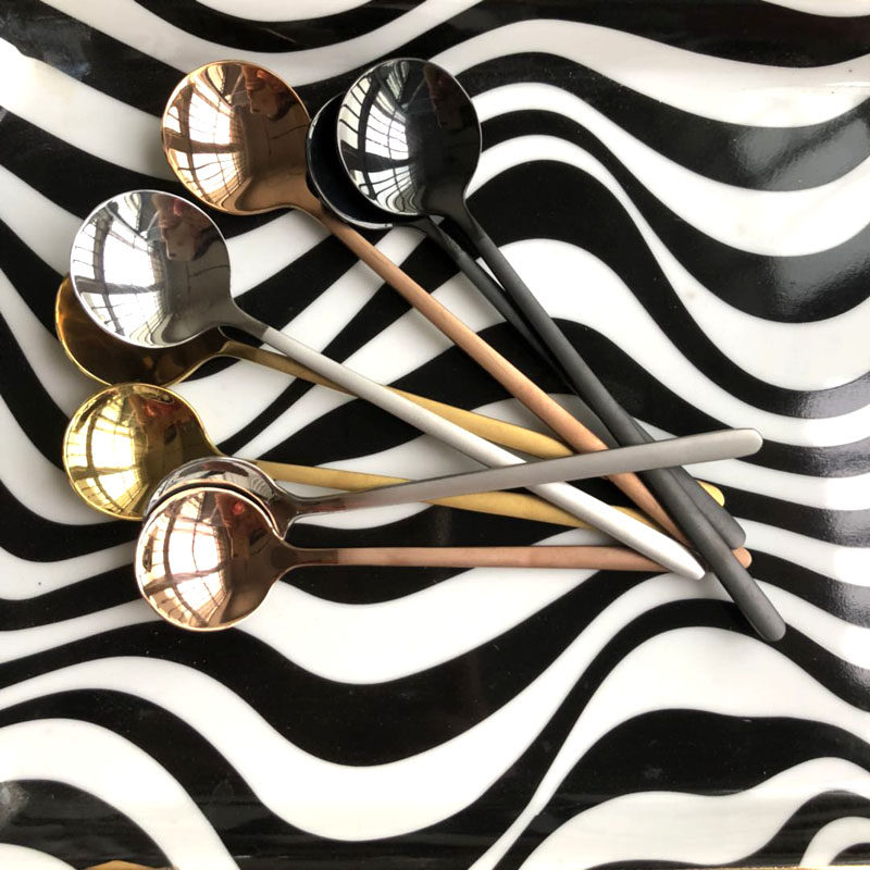 Black long round spoon Silver short round spoon Rose gold long round spoon Rose gold short round spoon Gold short round spoon Black short round spoon Gold long round spoon Silver long round spoon Gold leaf spoon