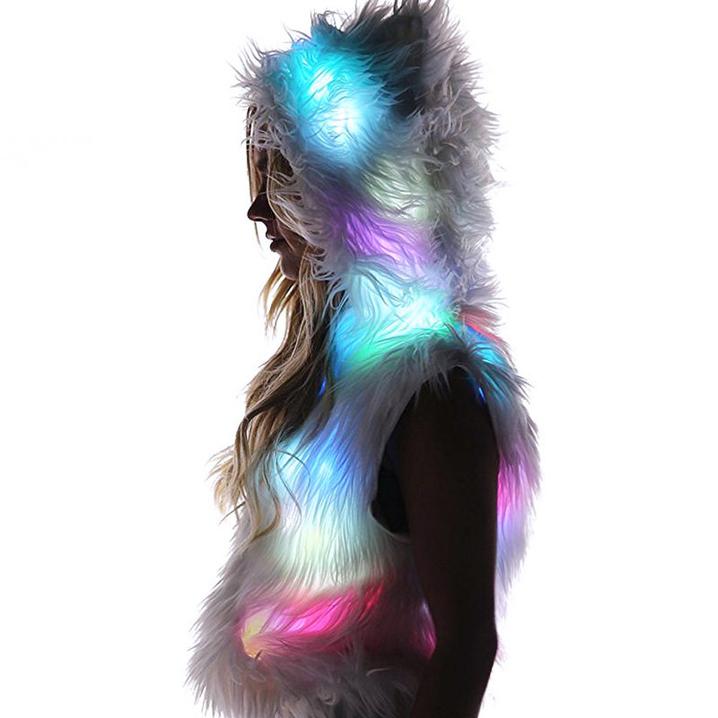 LED luminous horse chia with lamp white fur straw blouse with shoulder strap cap bar female singer DJ dance team to perform