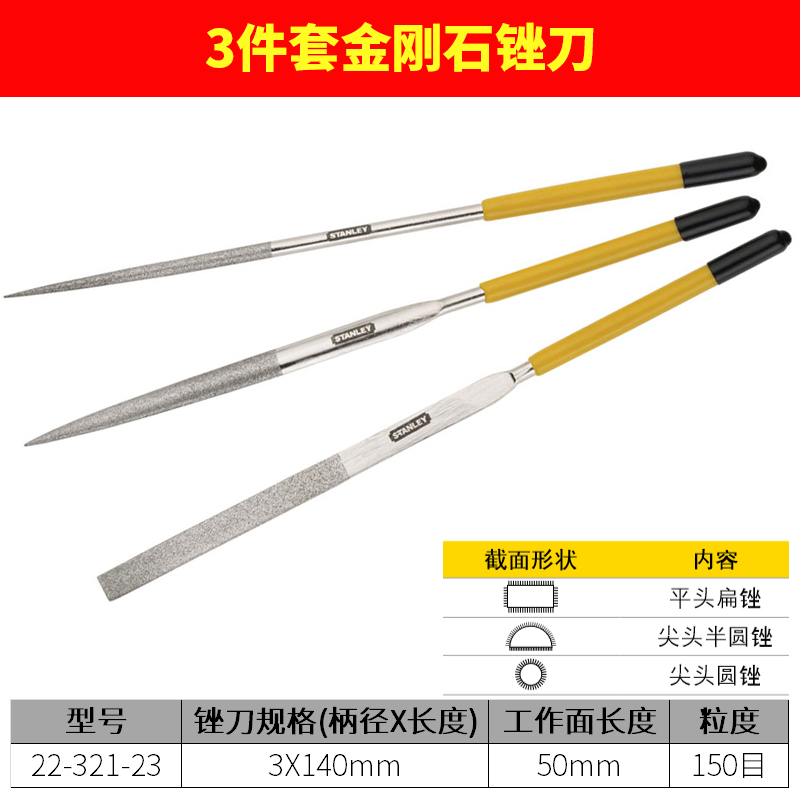 Stanley diamond filing knife polished metal handheld rubbing with round flat plate Mini small pointed file knife suit