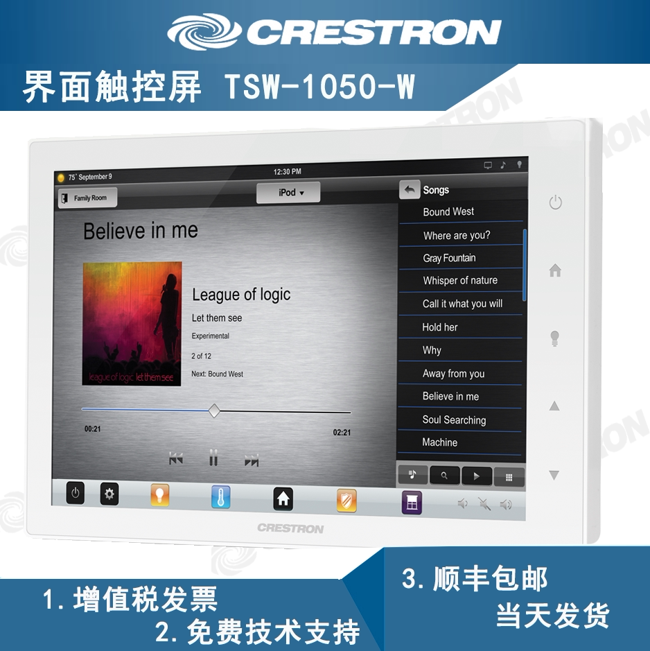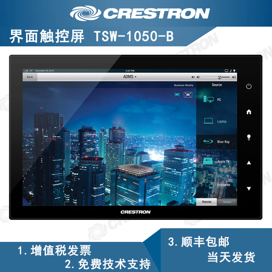 The Crestron Fast Satoshi TSW-1052 TSW-1050 wired touch screen supports POE speech recognition
