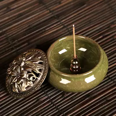 Gourd incense plug-in incense holder Zen indoor household incense burner Pure copper ring incense holder Incense accessories Ritual Buddha incense device