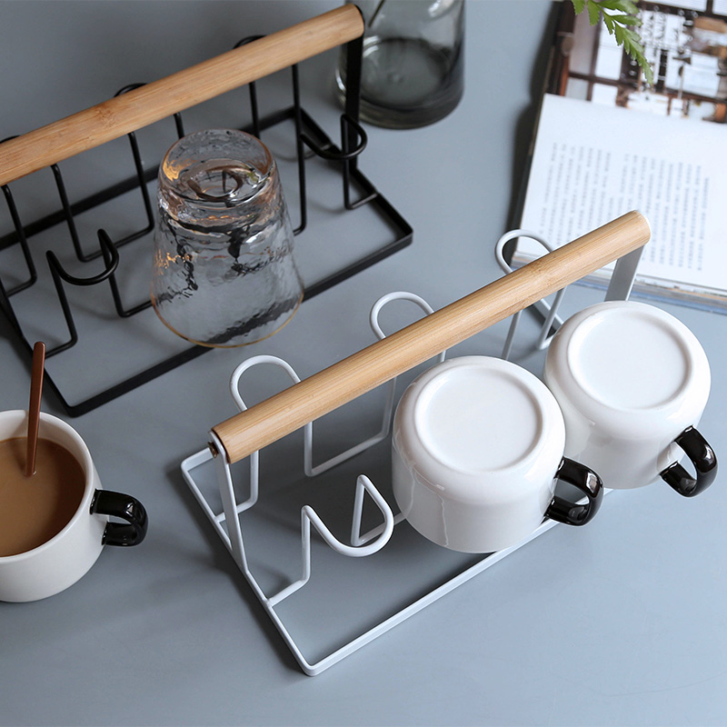WUXIN macaron iron glass cup holder simple Nordic style can put 6 coffee cups or beer glasses black and white