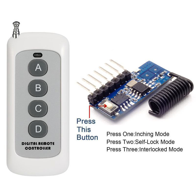 Wireless mini receiver transmitter four high-level output remote 1527 remote control switch module jog 433M