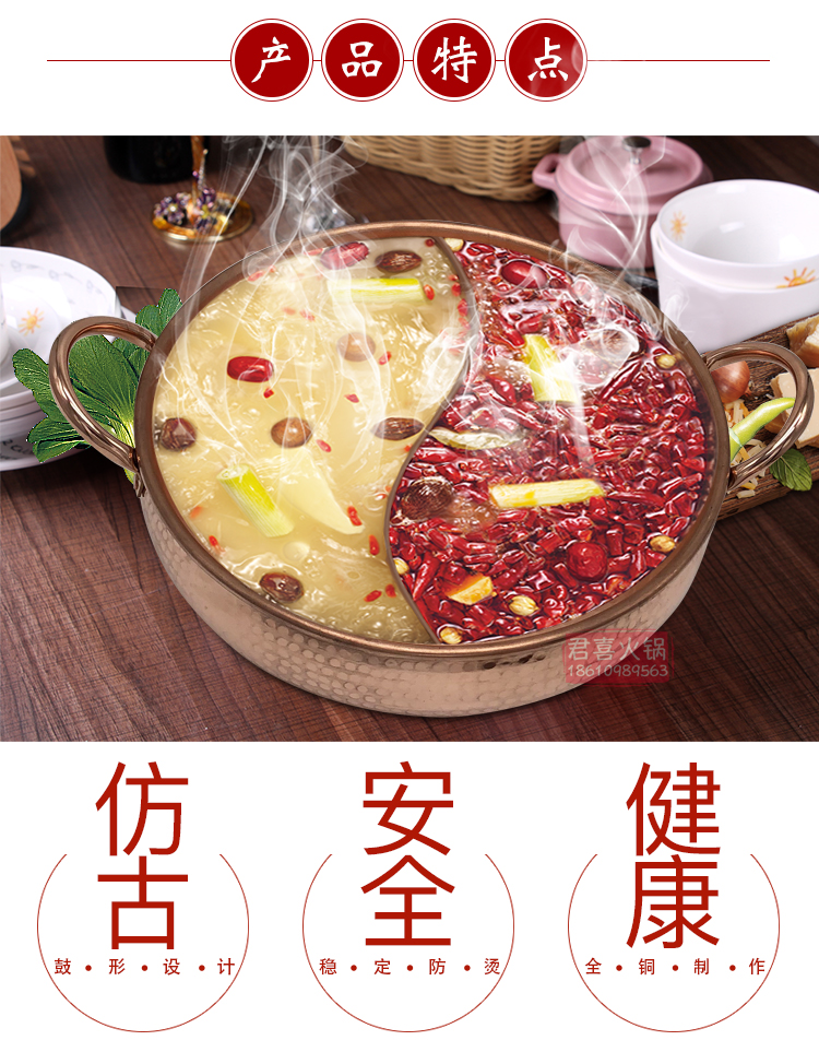 Copper hot pot pure red copper mandarin hot pot pure copper pot Old Beijing induction stove copper hot pot sour vegetable copper pot handmade household