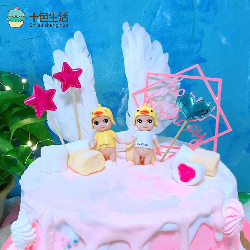 Cake decoration flamingo decoration decoration card swan birthday cake decoration day feather wings cake flag