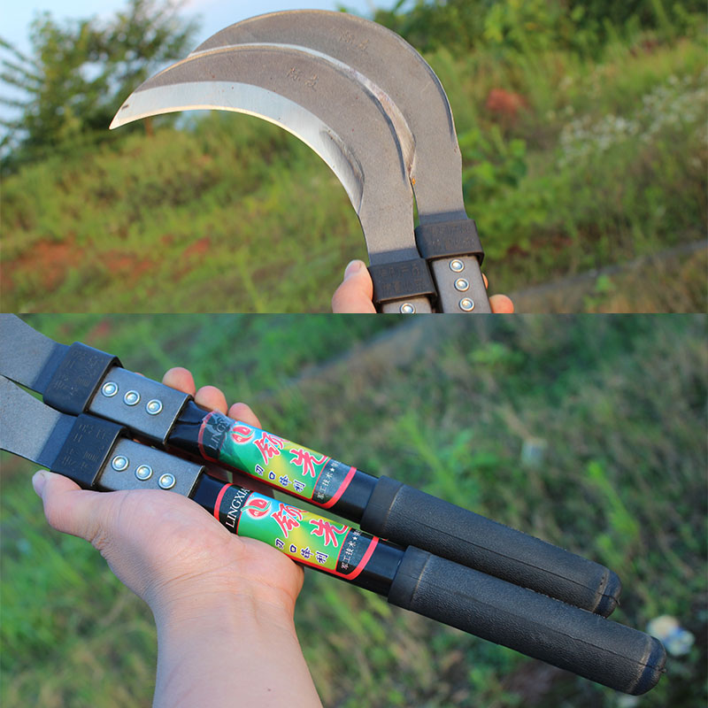 Thickened one top three imported manganese steel long-handled sickle mowing knife Agricultural weeding rice cutting corn sickle