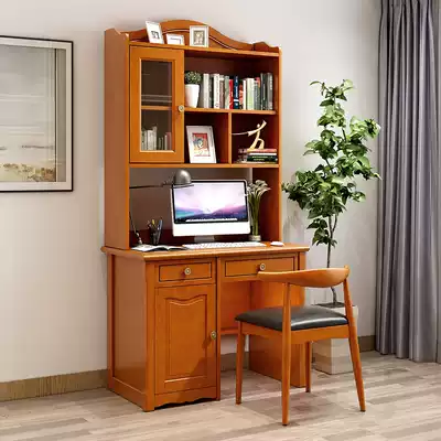 Solid wood desk with bookshelf combination bookcase integrated home computer desk desktop one meter small apartment learning desk