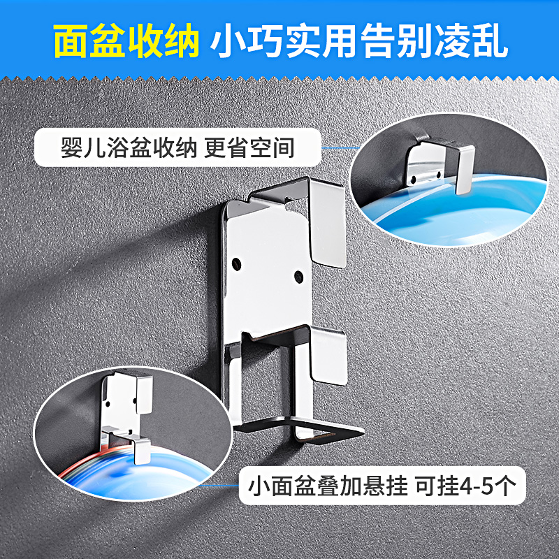 304 stainless steel washbasin hook make-up room wall-mounted face basin rack bathroom shower bath tub containing layer frame free of punch
