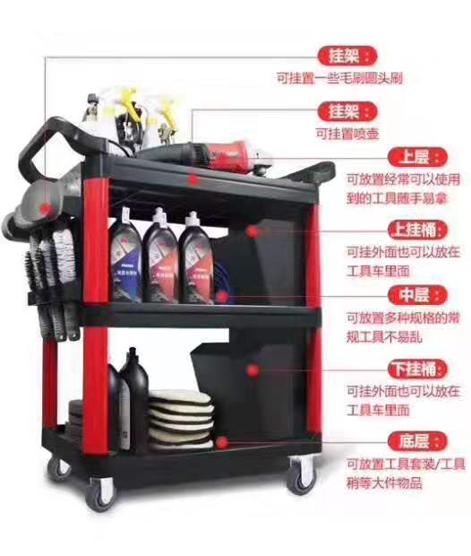 Car Car Wash Beauty Shop Tool Car Triple Trolley Cling Film Polished Cleaning Car Fine Wash Equipment Rack Dining Car-Taobao
