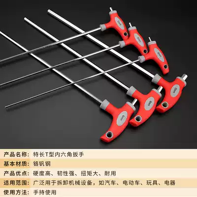 Longed t-type hexagon wrench extension rod with handle inside six-way tool extra long handle hexagon ball head