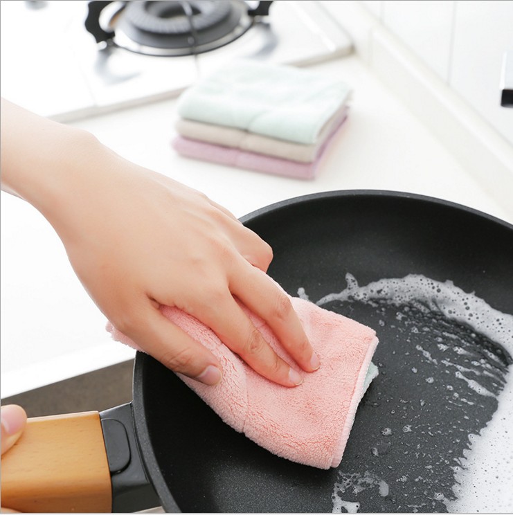 Bicolor cloth water-absorbent dishcloth plus thick rubbing table cloth towel kitchen not stained with oil not dropping out of hair cleaning rag wipe hand towel