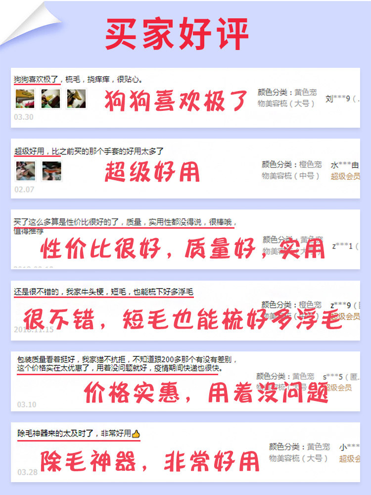 Green pet grooming comb (small) (recommended below 10 catties) Orange pet grooming comb (medium) (recommended 10-30 catties) Yellow pet grooming comb (large) (recommended 30-