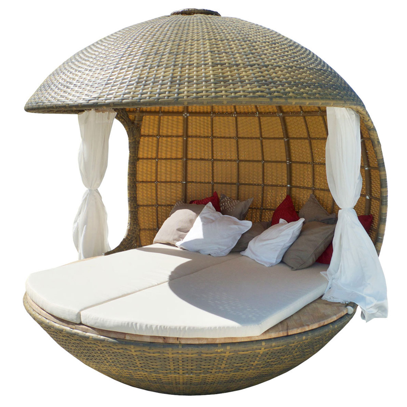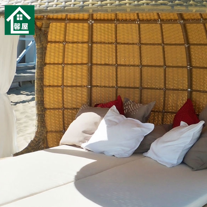 Outdoor bed rattan creative bird cage Nordic club hotel sea view room eggshell round shade leisure rattan bed