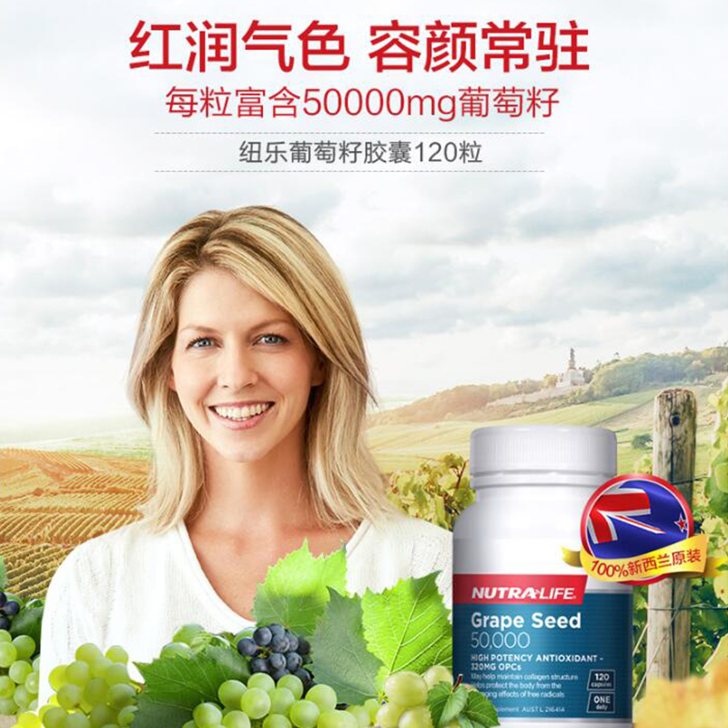 New Zealand direct mail Australia Nutralife New Music Grape Seed Extract Antioxidant Capsules 50000mg 120 Capsules