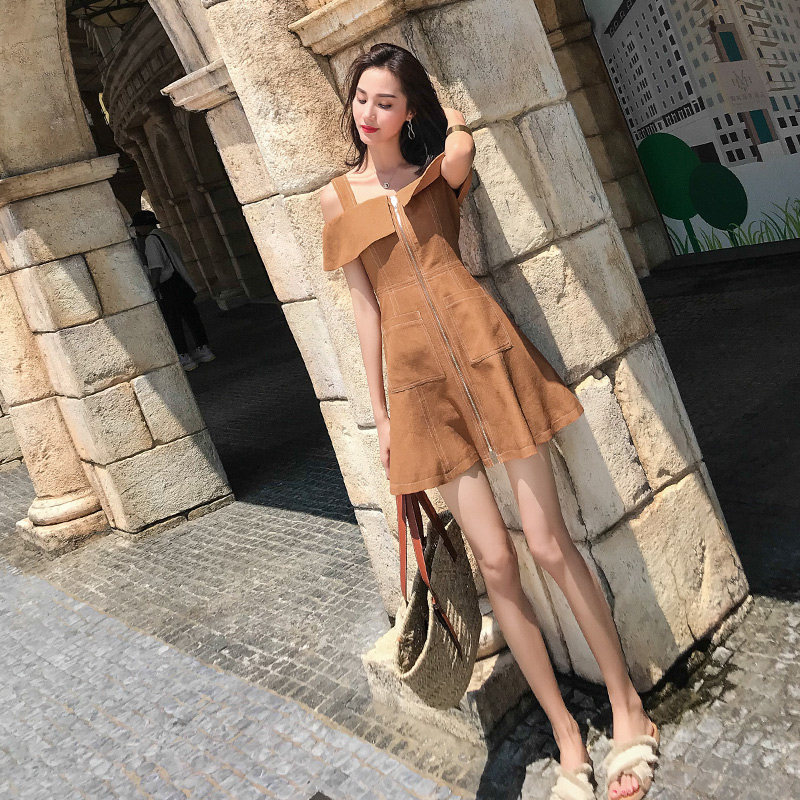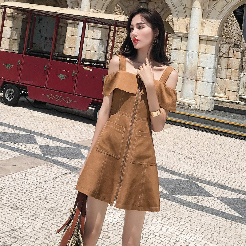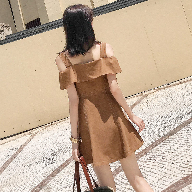 2022 new fashion Mori style French retro small man orange temperament one word shoulder strap dress women's summer