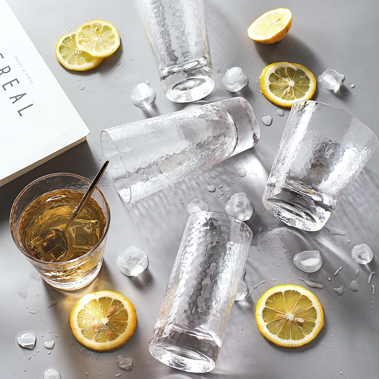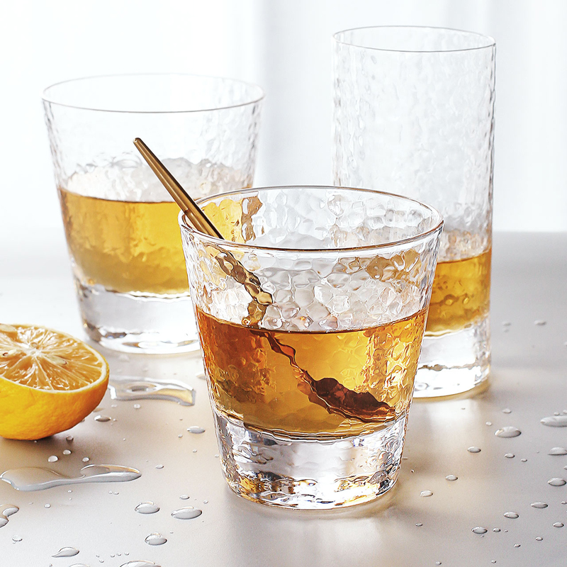 Hammer grain glass home creative drinking cup European transparent beer glass juice cup drink cup ink color