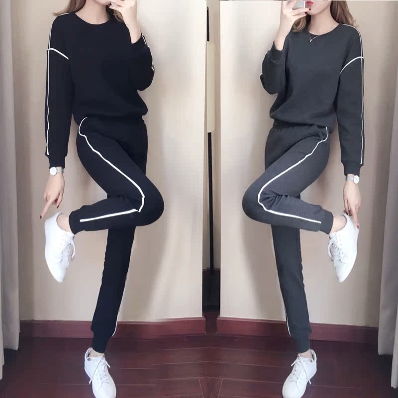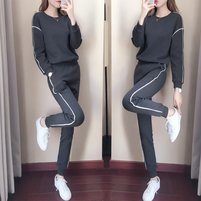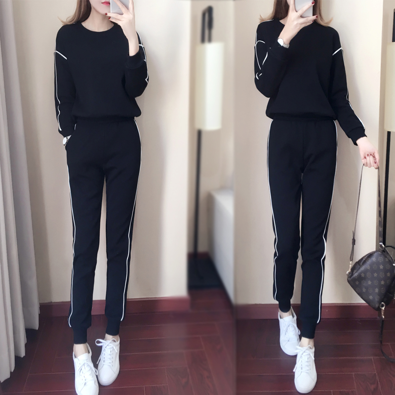 Casual sports suit women's spring and autumn 2021 new fashion Western style slim sweater running trousers two-piece tide
