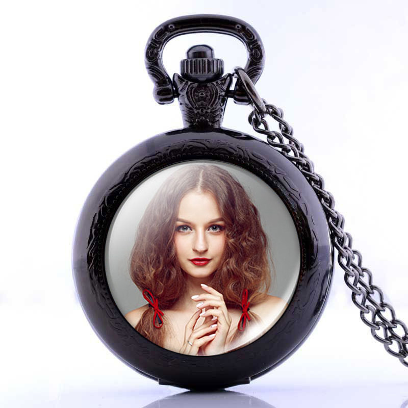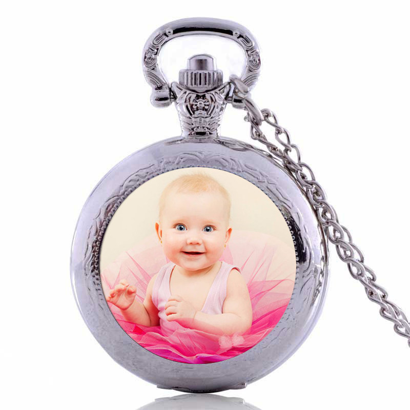 Medium vintage flap pocket watch necklace student hanging watch custom photo children men and women quartz watch gift