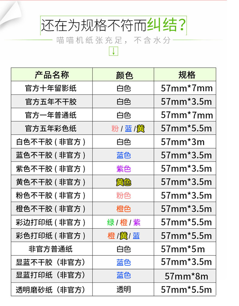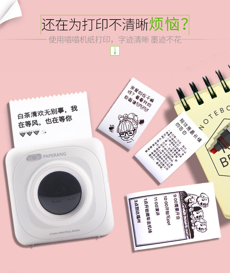 PAPERANG MEOW MEOW P1 P1 P1S P2 P2 CUSTOM 10 YEARS PAPER COLOR NO DRY ADHESIVE PAPER Convenience post Decade 57 * 30mm Thermal photocopy Paper Meow Printed Sheet Machine Silicone Cover