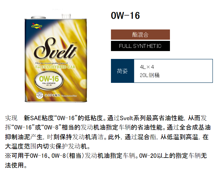 Shanghai Qiangai Japan SUNOCO Sun Svelt 0w16 Ester Full Synthetic Oil Day Train Applicable