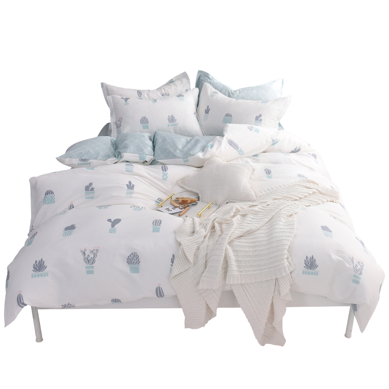 ins Cactus Nordic simple style Cotton double 4 four-piece bedding Cotton student dormitory three-piece set