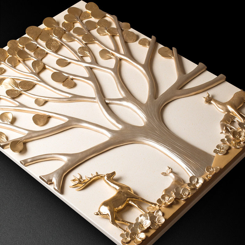Fu Sculptor decorated with modern minimalist 3D solid relief hanging painting Living room decoration painting New Chinese triplex background wall mural painting